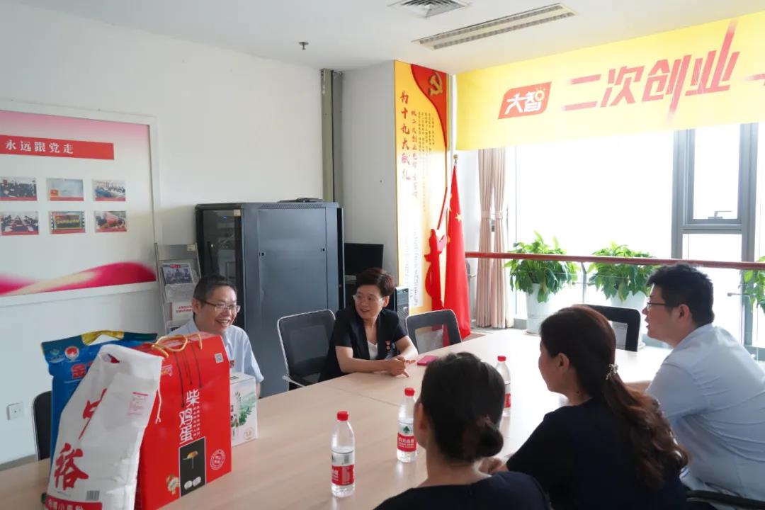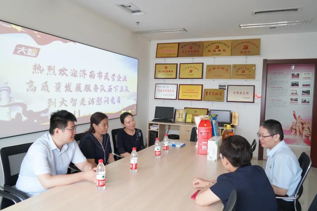 7月1日,濟南市民營企業高質量發展服務隊到大智慰問光榮在崗老黨員。大智教育集團黨委書記王現芹熱情接待。