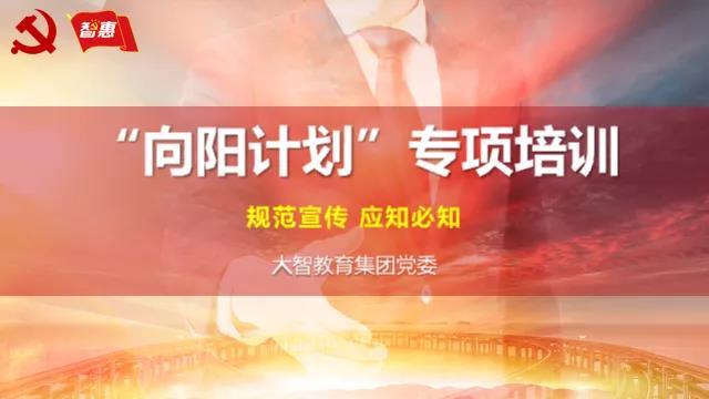 為進一步提高黨員骨干的綜合素質,落實好“三個著力凝團隊”,把業務骨干培養成黨員,把黨員培養成業務骨干,把黨員業務骨干培養成管理人才,為集團干部隊伍輸送新生力量,集團黨委從一線選拔了一批思想積極向上、愿意扎根大智平臺的優秀黨員,進行“向陽計劃”專項培訓。