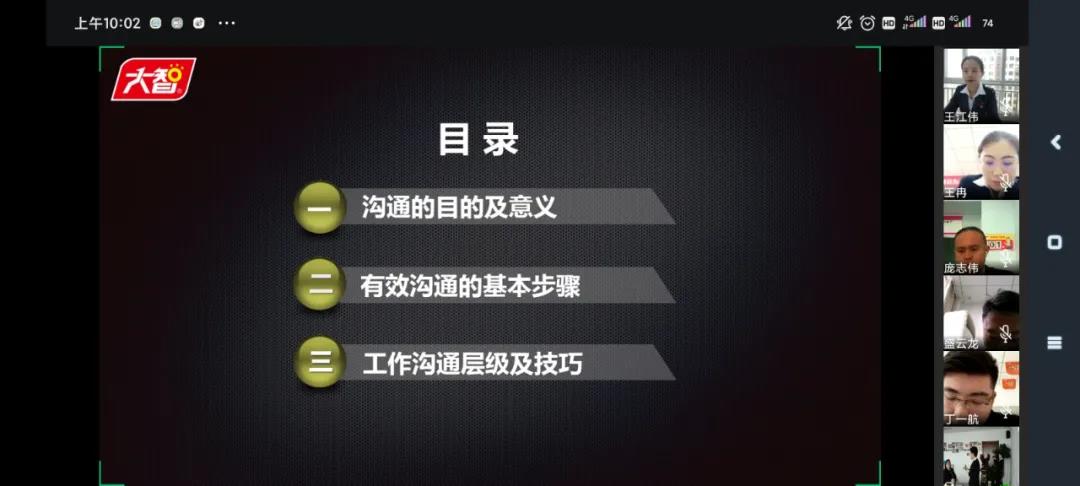 2月26日上午,大智教育集團黨委書記王現芹為大智黨員們帶來“向陽計劃”培訓第二講精彩內容分享——《管理就是溝通》。部分黨員現場參加培訓,其他各區域(公司)的黨員們通過視頻連線的方式參加培訓。