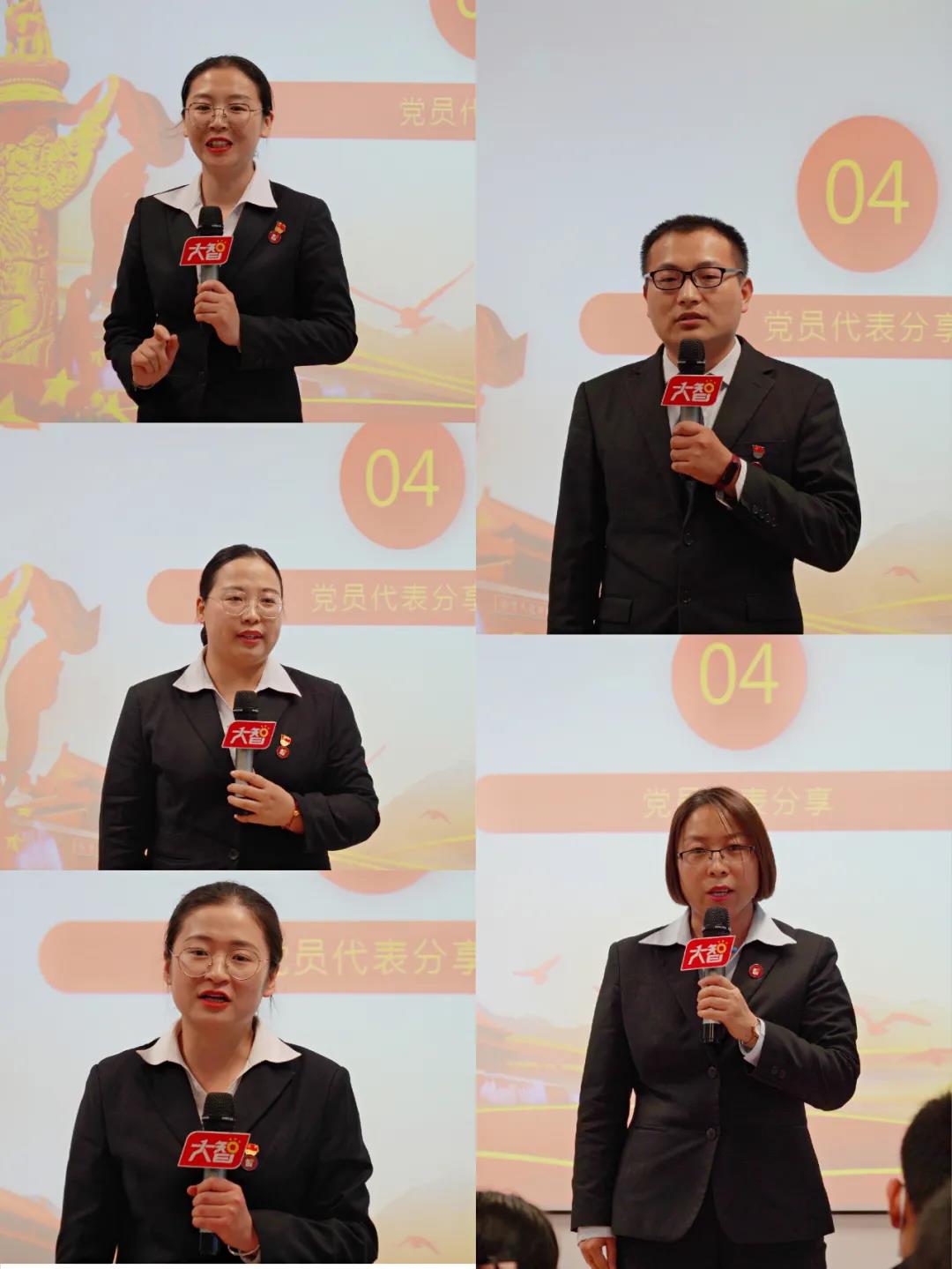最后,大智教育集團黨委書記王現芹表示,堅定理想信念才能不忘初心,堅持擔當作為才能牢記使命,強學習、提素養,才能做一名合格黨員。今后,大智教育集團將充分發揮黨組織的引領作用,提升個人素養、職業素養和專業素養,更好的為教育教學服務。