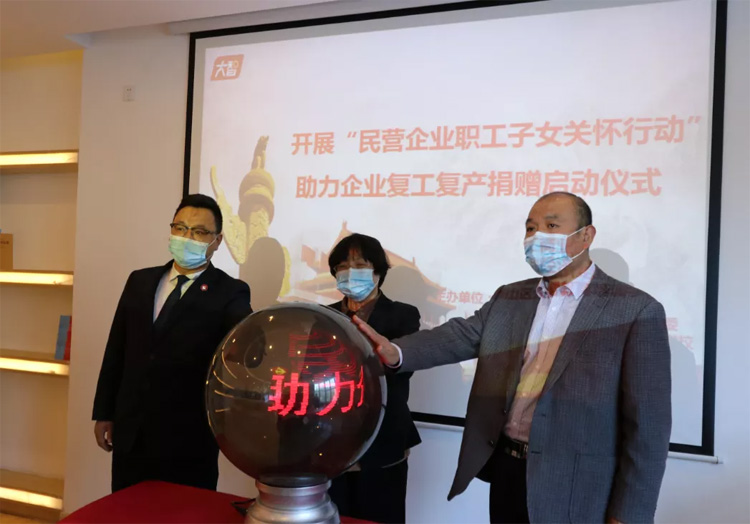 04月29日,大智泰安區(qū)域聯(lián)合泰山區(qū)工商聯(lián)、非公黨委舉行了“民營(yíng)企業(yè)職工子女關(guān)懷行動(dòng)”——助力企業(yè)復(fù)工復(fù)產(chǎn)捐贈(zèng)啟動(dòng)儀式。泰安區(qū)政協(xié)副主席、工商聯(lián)主席張玲,泰山區(qū)委統(tǒng)戰(zhàn)部副部長(zhǎng)、工商聯(lián)黨組書(shū)記裴衛(wèi)國(guó)參加活動(dòng)。