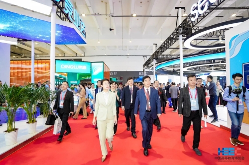 杜玉波在致辭時指出,本屆高博會恰逢中國高等教育學會成立40周年,也是在青島舉辦的第四次高博會,呈現出四大亮點和特色。一是傳承品牌特色,全面展示高新教育技術裝備。本屆高博會特裝展位占比90%,展出一萬余件教育裝備產品,啟動“高校設備采購服務系統”共建儀式,全方位展現支撐教育高質量發展的產品技術及重點項目。二是突出創新引領,持續賦能高等教育高質量發展。本屆高博會設置國際品牌、科創、黃大年式教師團隊建設成果展示等特色專區,打造集教育、科技、人才于一體的綜合性博覽會展覽模式。三是彰顯學術特征,聚焦研討高等教育改革發展的熱點問題。本屆高博會圍繞展覽展示主題,舉辦50多場高水平學術會議論壇,近20名院士親臨現場并作報告,積極回應高等教育改革發展的重大關切。四是深化服務需求,更好助力區域經濟社會發展。本屆高博會舉辦第四屆中國城市與高校發展大會、校地融合人才發展大會、山東半島藍色經濟區高校畢業生招聘會等,為打造“膠東經濟圈”賦能增效,充分發揮高等教育對區域經濟發展的支撐引領作用。