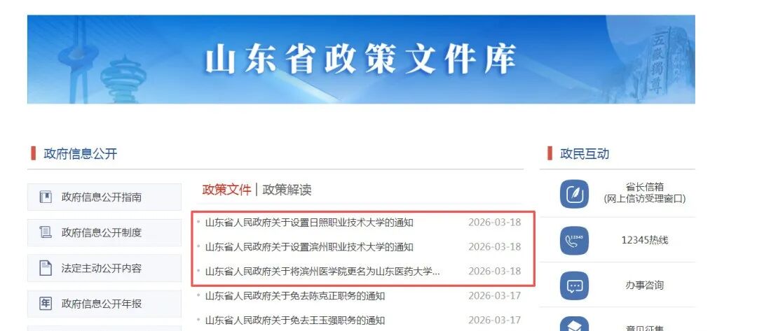 3月18日,山東省人民政府官網發布通知,根據《中華人民共和國高等教育法》《普通高等學校設置暫行條例》等法律法規及教育部相關批復,對濱州醫學院...