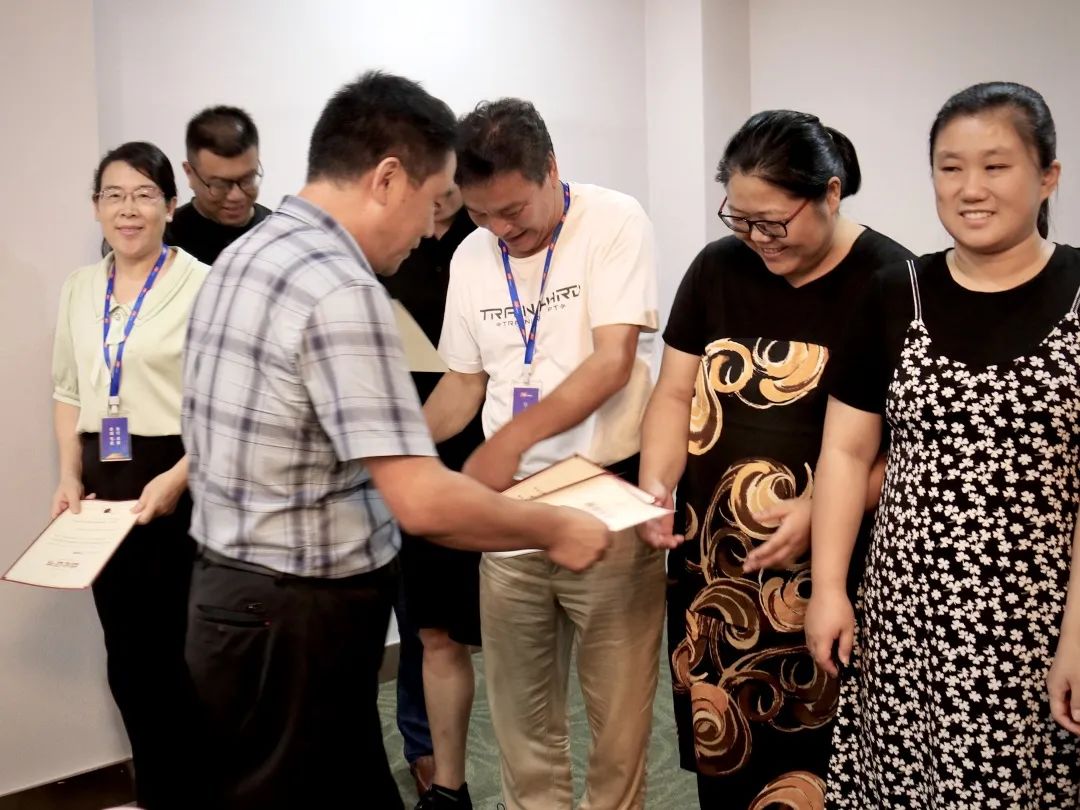 初秋時節,微風徐來,“研”意正濃。8月11日下午,為期四天的濟南市鋼城區教研員核心教研團隊高級研修班結業典禮在大智銘師研學基地海龍生態產業園世紀廳會議室成功舉辦。鋼城區教體局教師辦主任徐勤富,鋼城區教研室負責人魏述省主任、秦玲主任,大智銘師劉勤章院長參加典禮,大智銘師賈琦擔任主持人。