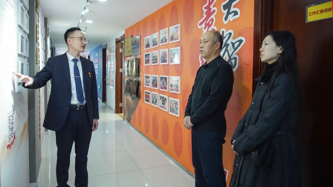 參觀黨員活動室,翻閱查看法治濟南建設(shè)示范單位創(chuàng)建材料。