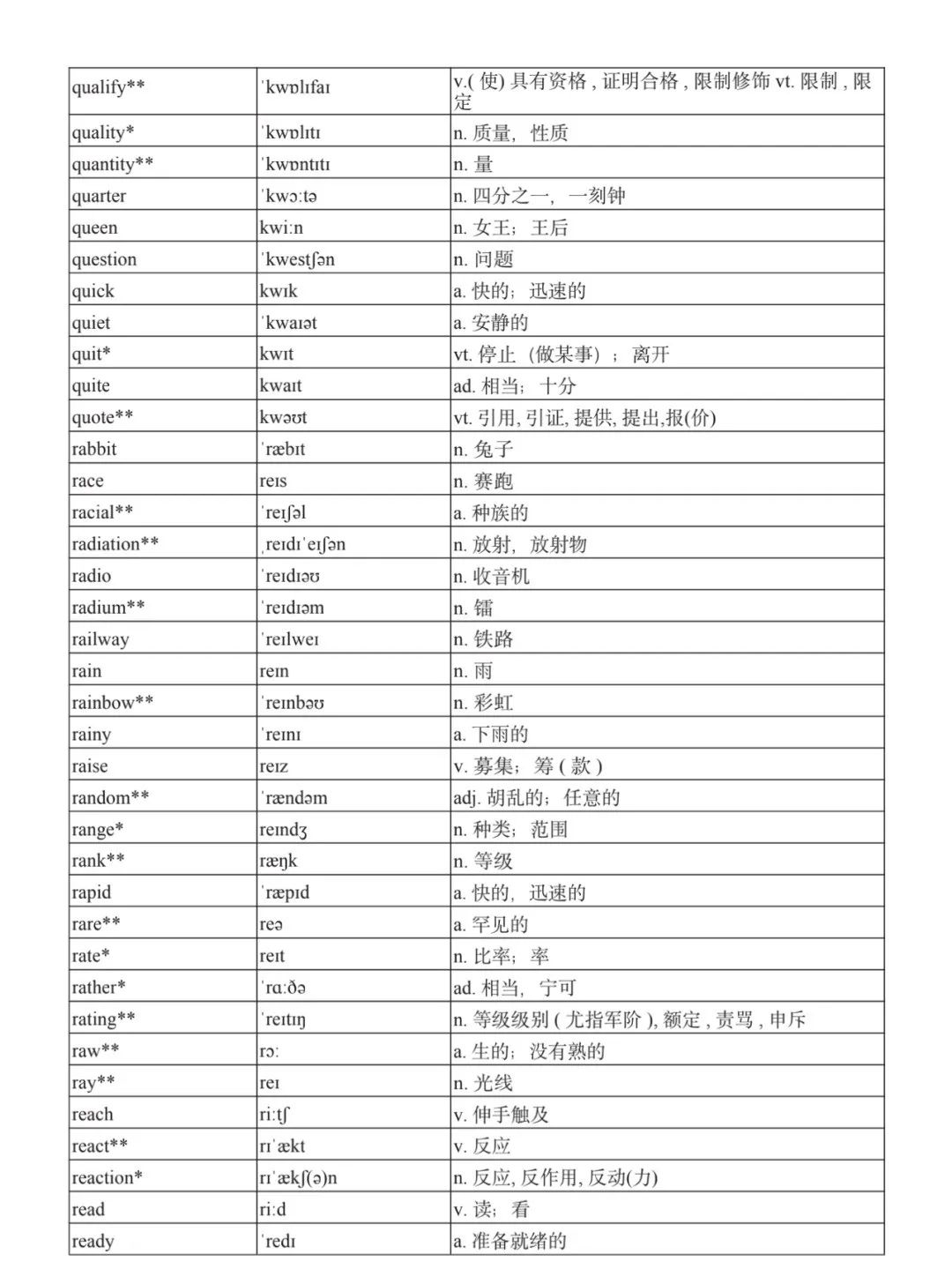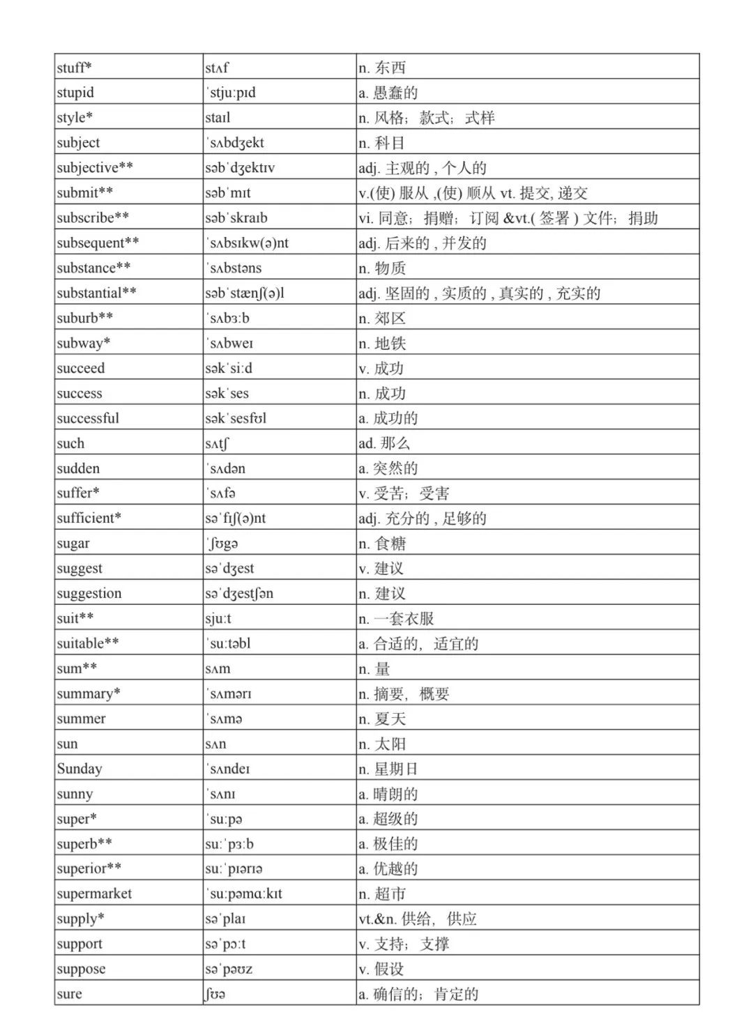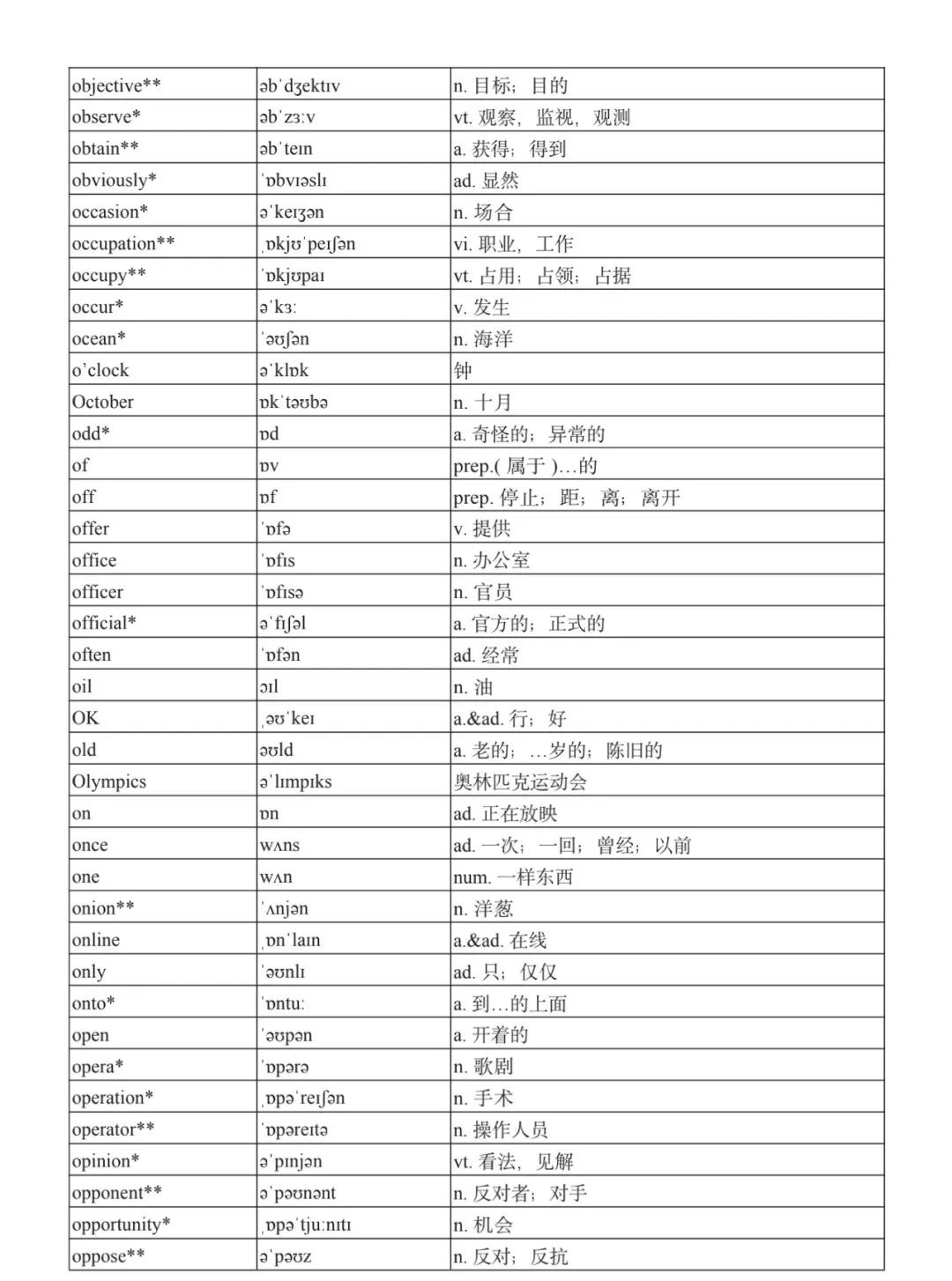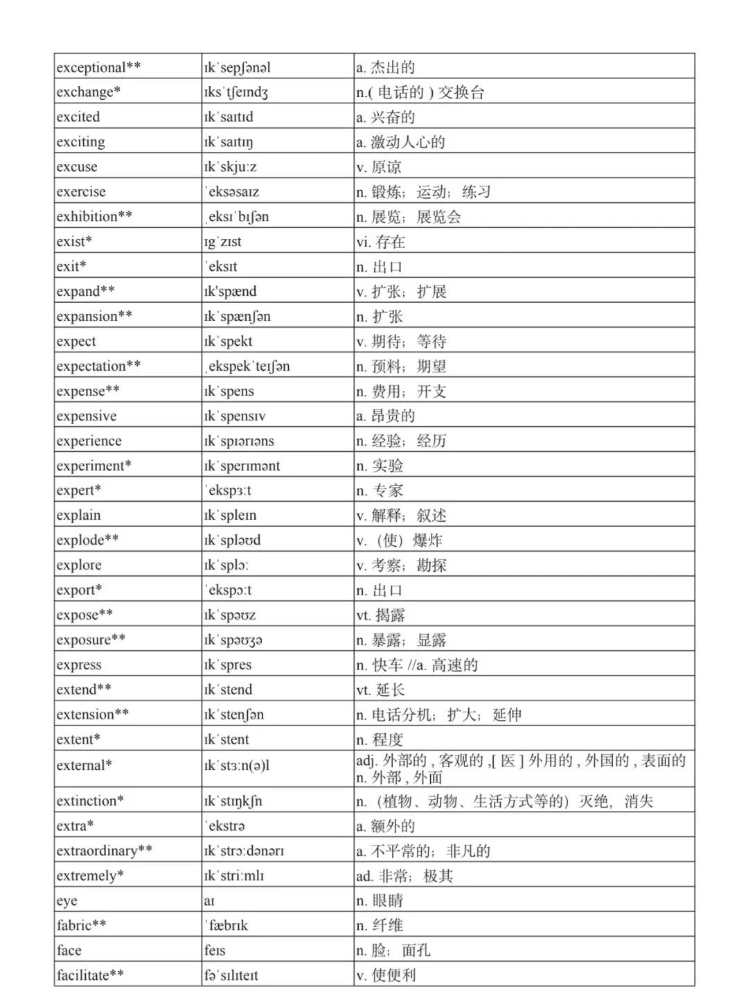 本詞匯表共收 3000 個(gè)單詞,含義務(wù)教育階段要求掌握的 1500 個(gè)單詞。高中英語必修課程應(yīng)學(xué)習(xí)和掌握 500 個(gè)單詞(表中加有一個(gè) * 號(hào)),累計(jì)達(dá) 2000。選擇性必修課程應(yīng)學(xué)習(xí)和掌握 1000 個(gè)單詞(表中加有兩個(gè) *號(hào)),累計(jì)達(dá) 3000。各地可根據(jù)實(shí)際情況在本詞匯表所收詞的基礎(chǔ)上,再選擇增加 200 個(gè)單詞。