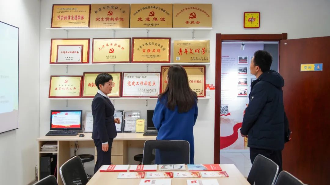 王現芹帶領大家參觀了黨建長廊,詳細介紹了大智組織架構、企業文化等相關情況,以及“智惠黨建一三九”黨建工作模式,黨建引領下的“一帶一促”群團建設理念和“智惠+”群團建設模式。大家對大智的黨建工作給予了高度評價。