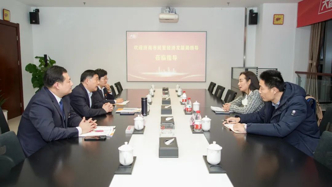 1月24日,濟南市民營經濟發展局副局長、黨組成員程文軍,濟南市民營經濟發展局協調服務處副處長、三級調研員呂萬里一行到大智控股集團總部調研,大智控股集團黨委書記王現芹,大智控股集團創始人、董事長張維東熱情接待。