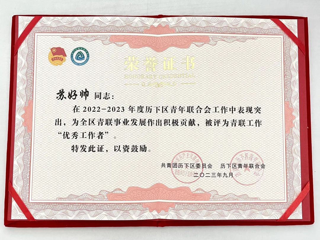 蘇好帥榮獲青聯工作“優秀工作者”稱號
