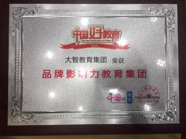 大智剛剛榮獲“德耀齊魯”道德示范基地,榮譽又接踵而至,12月12日,在由中國互聯網新聞中心(中國網)主辦的2016年中國教育家年會暨中國好教育盛典活動上,大智榮膺 “中國好教育-2016年度品牌影響力教育集團”。此次評選以“‘三傳四引’問道教育改革”為主題,大智以其優質的教學服務、優異的辦學成績以及良好的社會口碑,在眾多同類教育培訓品牌中脫穎而出,贏得大獎。