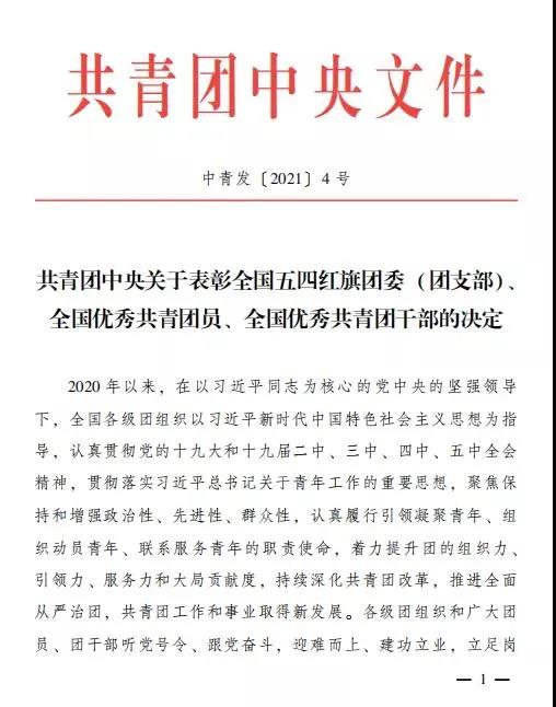 4月27日,共青團中央發布《關于表彰全國五四紅旗團委(團支部)、全國優秀共青團員、全國優秀共青團干部的決定》,山東省濟寧市任城