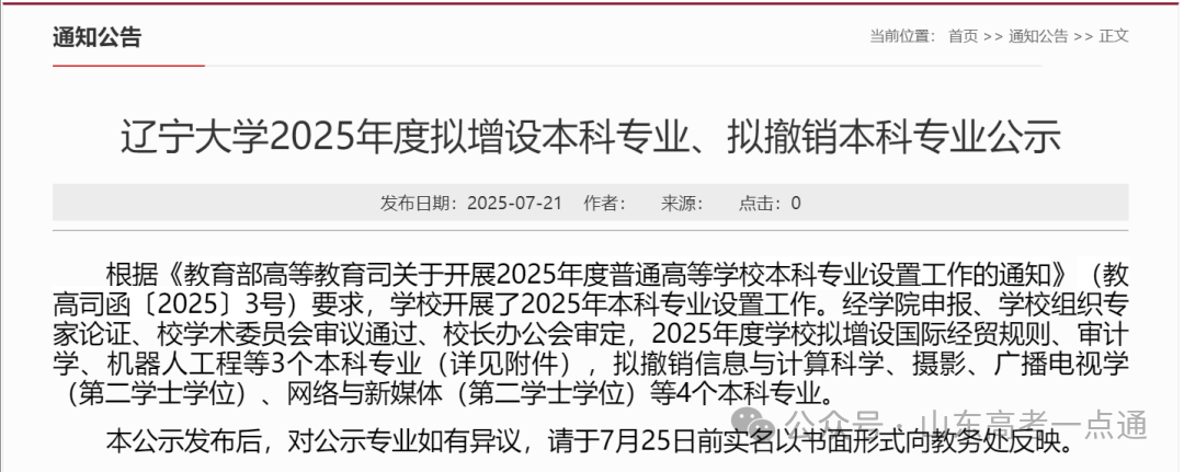 近日,遼寧大學、福建師范大學、江西農業大學、西安郵電大學相繼發布關于2025年度調整本科專業情況的公示。遼寧大學7月21日,遼寧大學發布《2...