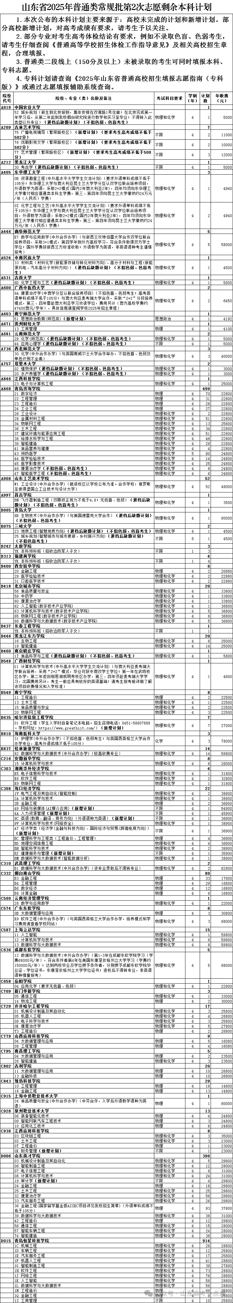 剛剛,山東省教育招生考試院發布了《山東省2025年普通類常規批第2次志愿剩余本科計劃》。該計劃將在7月24日-26日進行志愿填報,在這里要提...