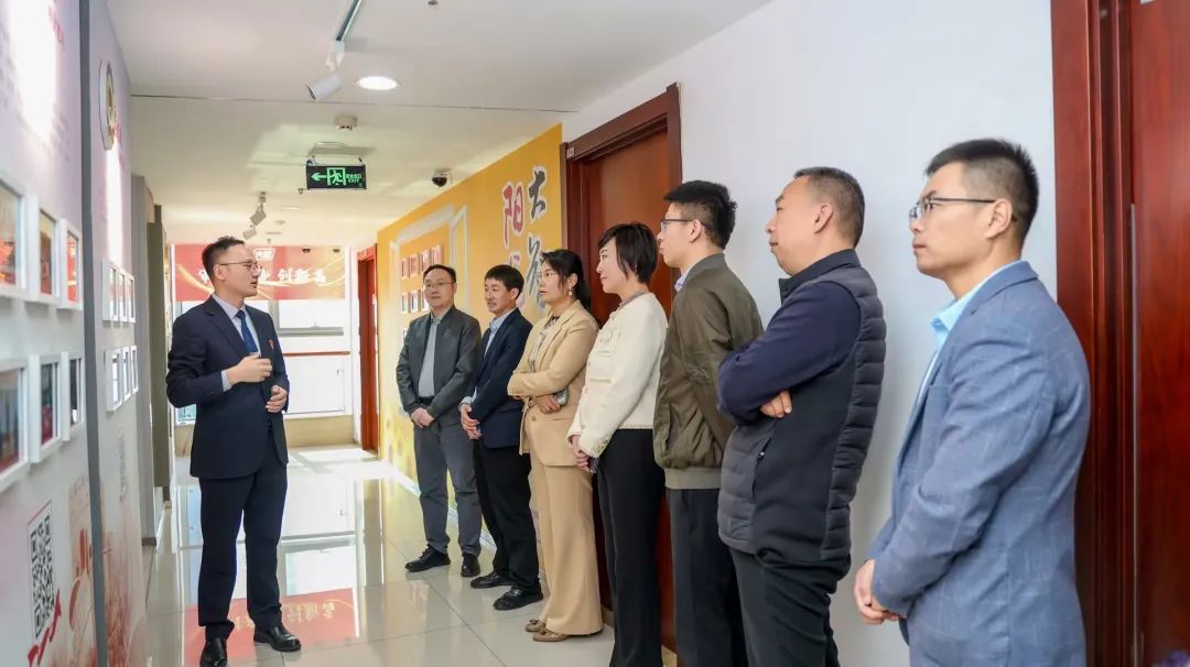 大智控股集團行政負責人昌舉岡帶領大家參觀了黨建長廊,詳細介紹了大智組織架構、企業文化等相關情況,以及“智惠黨建一三九”黨建工作模式,黨建引領下的“一帶一促”群團建設理念和“智惠+”群團建設模式,大家對大智的黨建工作給與了高度評價。