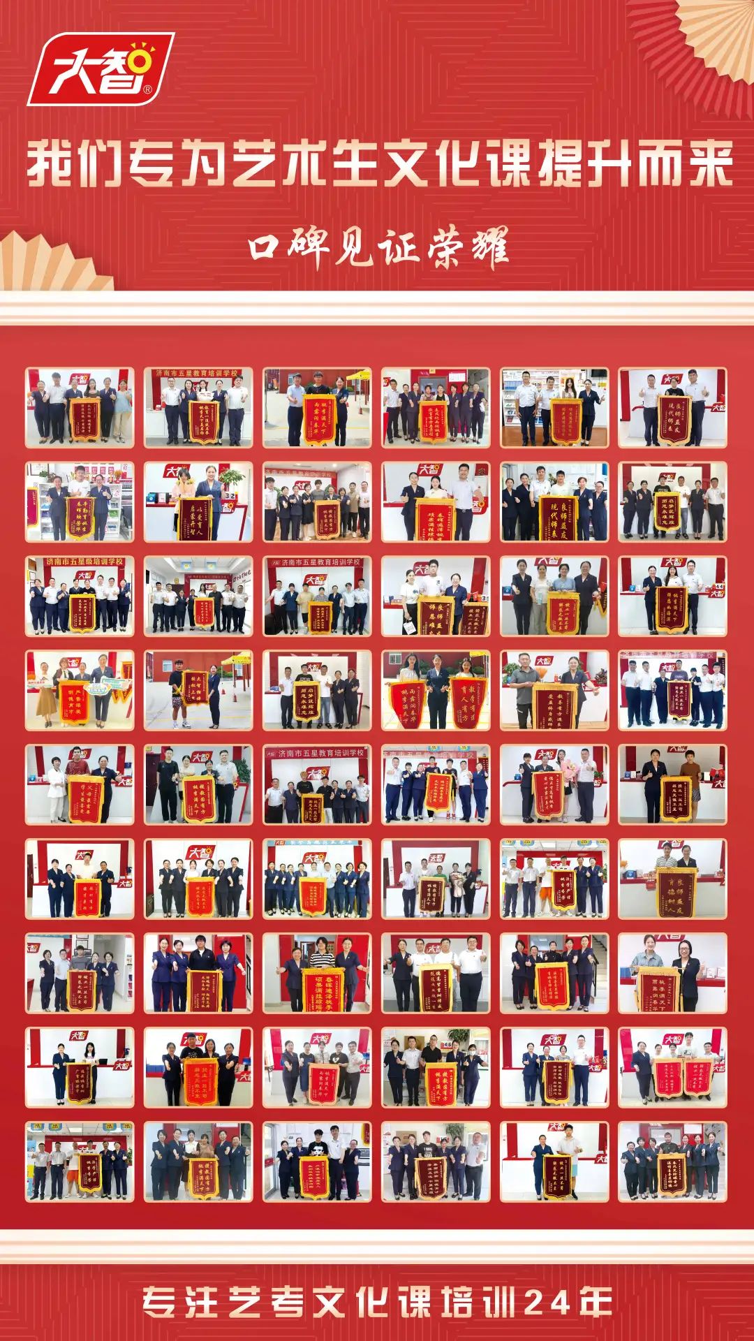 一面面錦旗見證大智教學(xué)實力。大智的教研成果得到了《大眾日報》《齊魯晚報》《半島都市報》、山東電視臺、齊魯電視臺等主流媒體廣泛關(guān)注,曾先后榮獲“中國社會組織評估4A級單位”“山東省消費者滿意單位”及“山東省著名商標(biāo)” 等榮譽,受到學(xué)生和家長的好評。