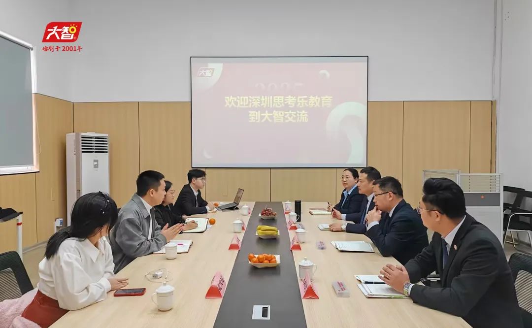 3月28日,深圳思考樂教育全日制副總經理鄧小波帶領全日制項目部門負責人到大智交流學習。大智控股集團副總裁、大智總校長蘇好帥熱情接待。