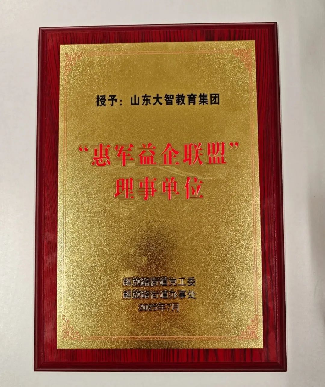 現(xiàn)場,大智被授予“惠軍益企聯(lián)盟”理事單位。