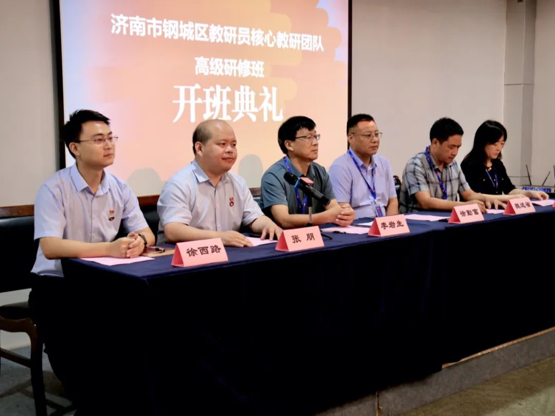 8月8日上午,濟南市鋼城區教研員核心教研團隊高級研修班開班典禮在海龍生態產業園世紀廳會議室成功舉辦。鋼城區教體局黨組成員副處級領導干部李巖生,鋼城區教體局教師辦主任徐勤富,鋼城區教研室負責人魏述省主任、秦玲主任,大智銘師負責人張朋,大智銘師項目負責人徐西路參加典禮,大智銘師賈琦擔任主持人。