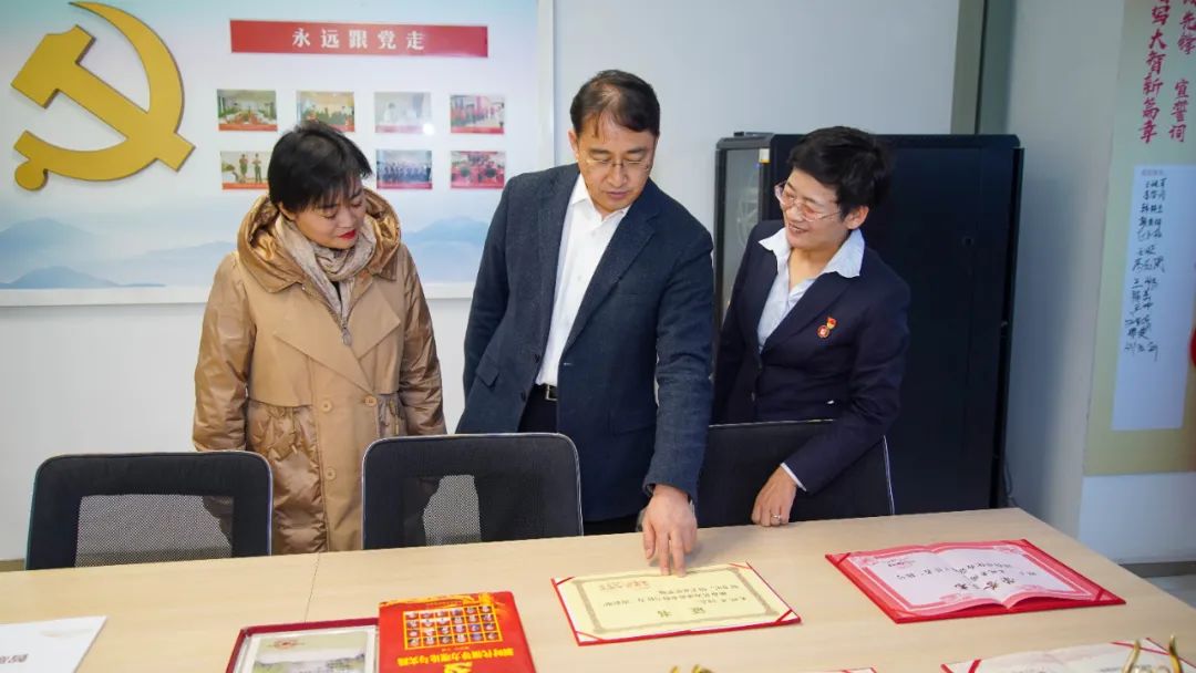 參觀黨員活動室,翻閱查看大智黨建相關(guān)資料。