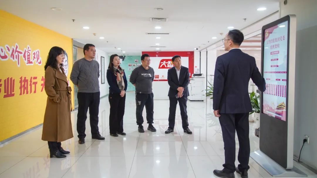 昌舉岡帶領(lǐng)大家參觀了黨建長廊,詳細(xì)介紹了大智組織架構(gòu)、企業(yè)文化等相關(guān)情況,以及“智惠黨建一三九”黨建工作模式,黨建引領(lǐng)下的“一帶一促”群團(tuán)建設(shè)理念和“智惠+”群團(tuán)建設(shè)模式。大家對大智的黨建工作給予了高度評價(jià)。