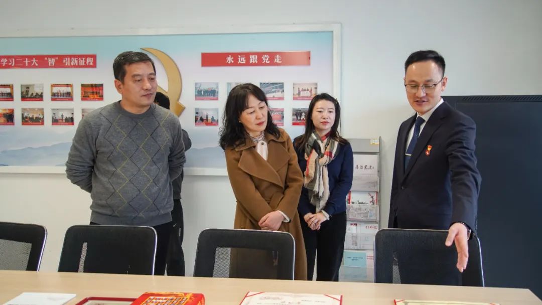 參觀黨員活動(dòng)室,翻閱查看大智黨建相關(guān)資料。