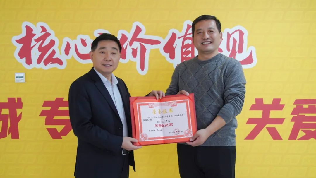 現(xiàn)場,王寶嶺秘書長為張維東頒發(fā)“2021-2022年度優(yōu)秀企業(yè)家”證書。