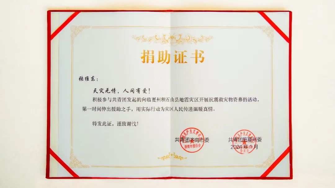張維東獲評(píng)東西部協(xié)作和援助甘肅積石山縣地震災(zāi)區(qū)工作作出積極貢獻(xiàn)的青年企業(yè)家