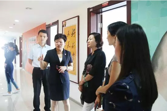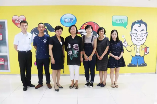 07月28日,濟南市歷下區文東街道黨工委副書記樊妍一行到大智交流考察“兩新組織”黨建工作, 大智教育集團黨委書記、副總裁、好媽媽俱樂部主席王現芹熱情接待考察團一行。
