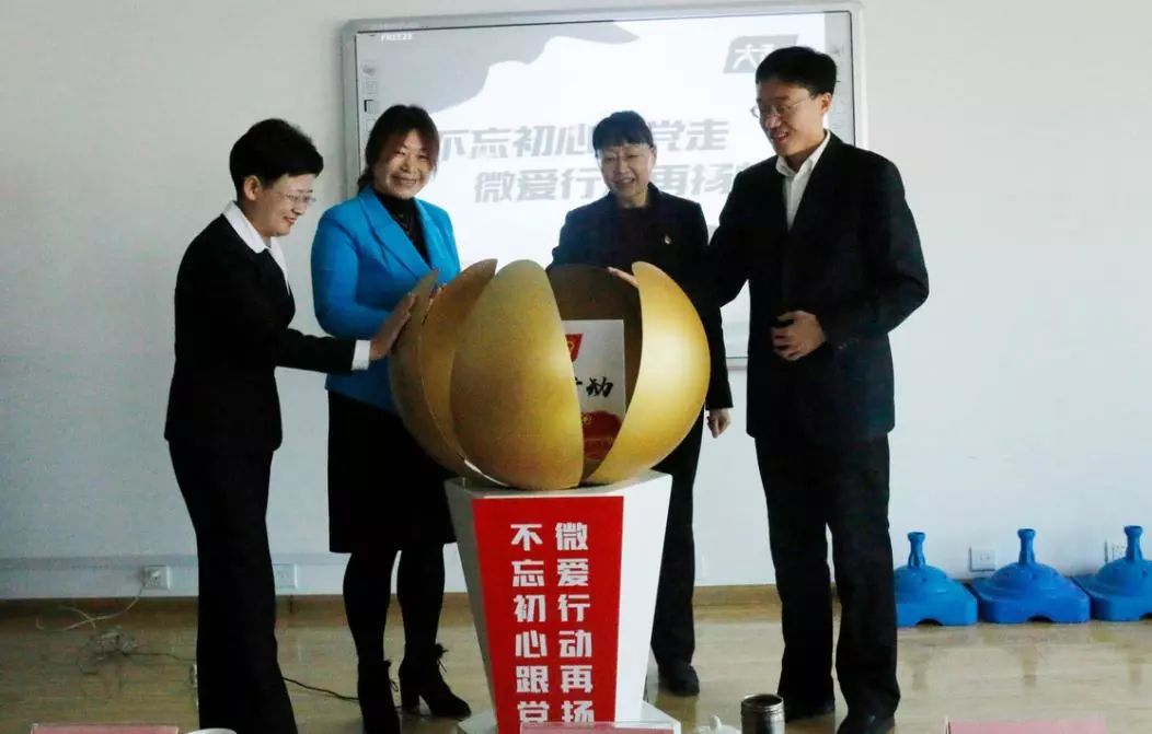 中共濟南市歷下區委副書記尹紅梅、共青團濟南市委副書記王友進、解放路黨工委書記仵愛之、大智控股集團黨委書記、副總裁、好媽媽俱樂部主席王現芹共同按動“微愛行動”啟動球,新一年度“微愛行動”正式啟動!