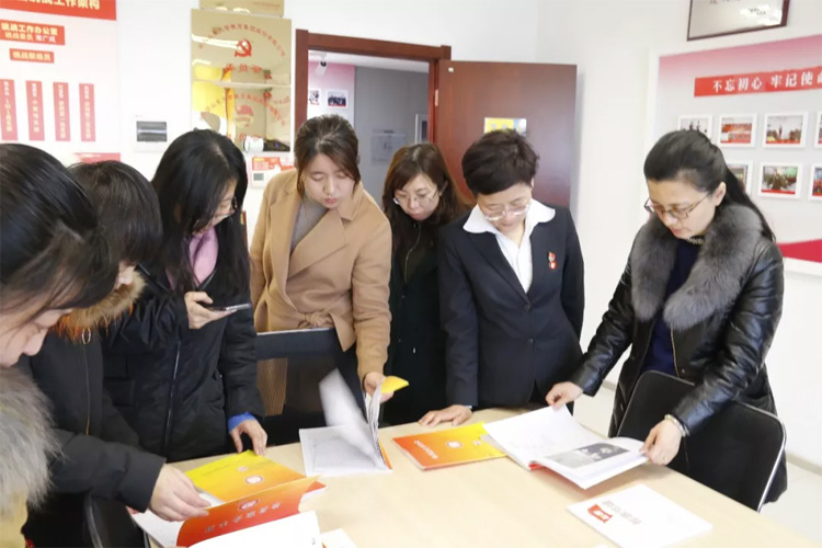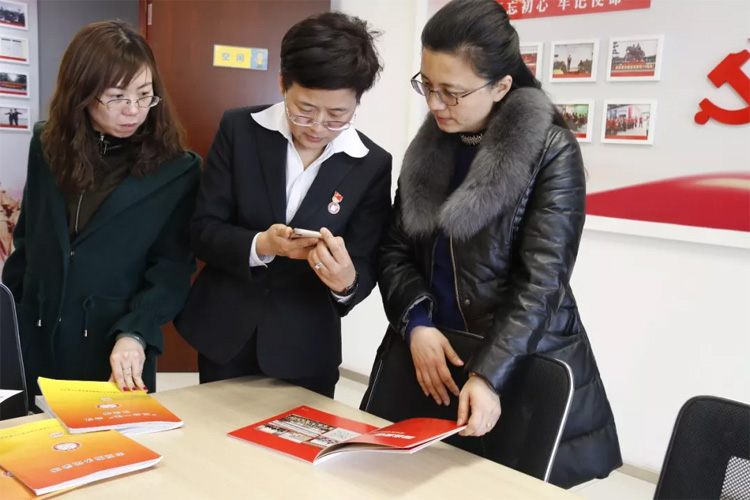02月22日,濟南市天橋區堤口路街道黨工委副書記、紀工委書記劉瑩一行,在歷下區解放路街道黨工委副書記高紅陪同下,到大智交流黨建工作。大智教育集團黨委書記王現芹、黨委委員常廣成熱情接待。