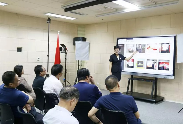 王現芹首先向大家介紹了大智的組織架構,并帶領大家參觀了大智控股集團黨群陣地,了解了大智“智惠黨建一三九”工作模式以及黨建引領下的大智 “一帶一促”群團建設理念和“智惠+”群團建設模式。隨后又通過視頻、圖片、文字資料,對于大智黨建工作進行了詳細展示。