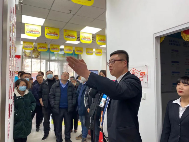 馬尚街道黨建辦副主任馬飛同志一行蒞臨大智淄博區域張店分校參觀交流,大智淄博區域黨支部書記田莎莎熱情接待。