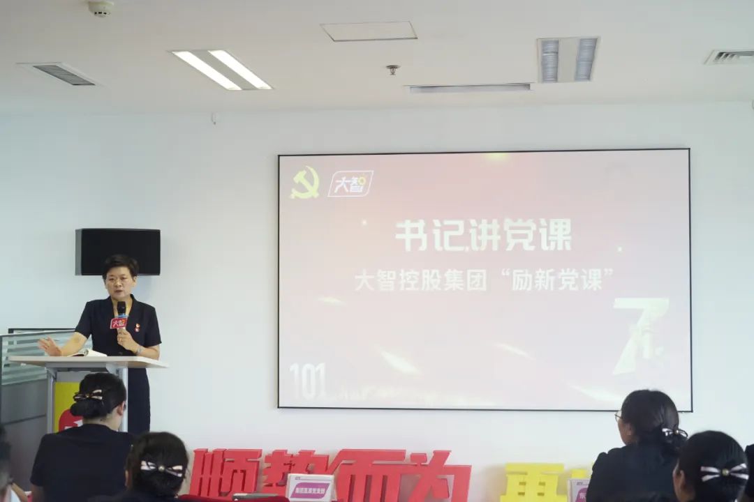 大智控股集團黨委書記王現芹為大家帶來《沐浴黨的光輝 豪情邁向未來》“勵新黨課”,并勉勵大家做會感恩的共產黨員,做珍惜榮譽的共產黨員,做表里如一的共產黨員,汲取轉型升級奮進力量,真正發揮好黨員模范帶頭作用。