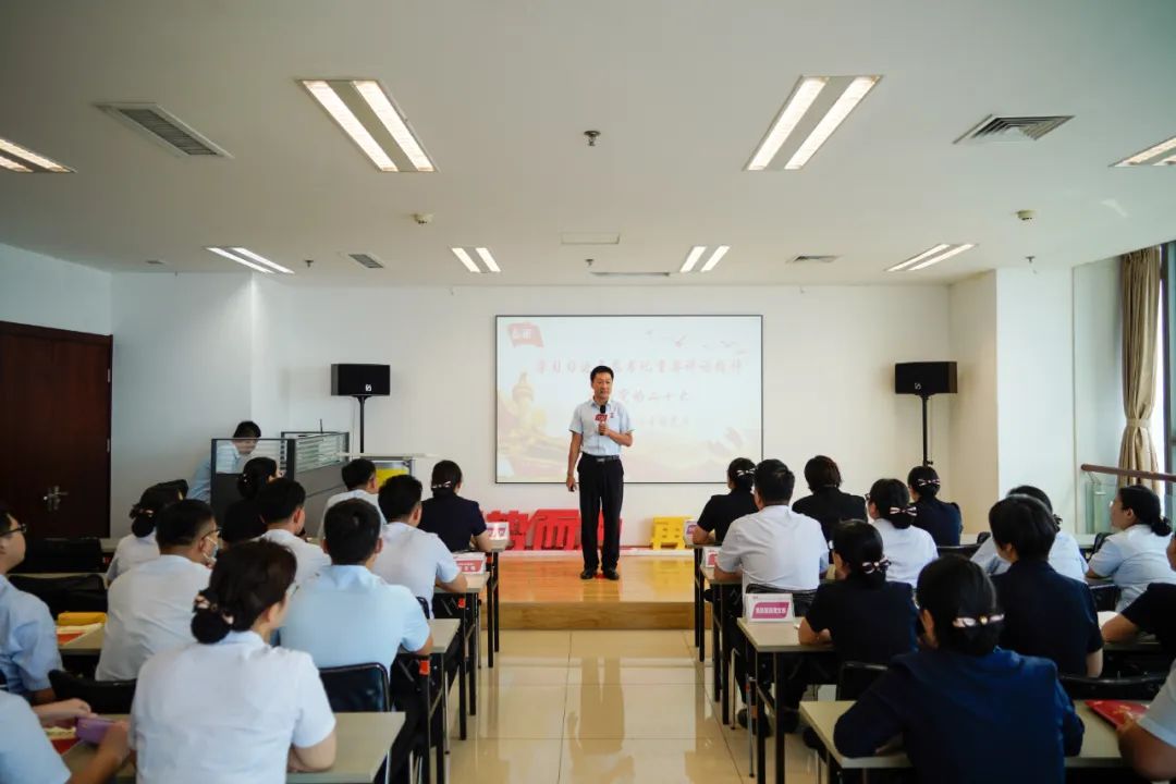 現場,大家學習了習近平總書記在省部級主要領導干部“學習習近平總書記重要講話精神,迎接黨的二十大”專題研討班上的重要講話精神以及《中國共產黨黨徽黨旗條例》內容。