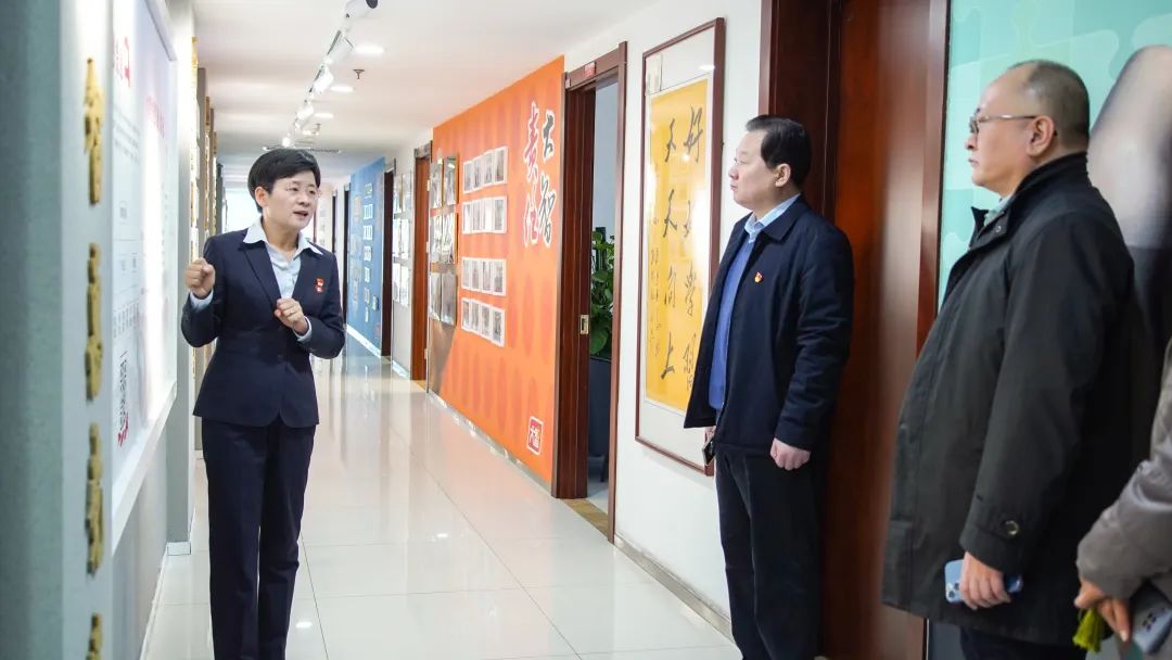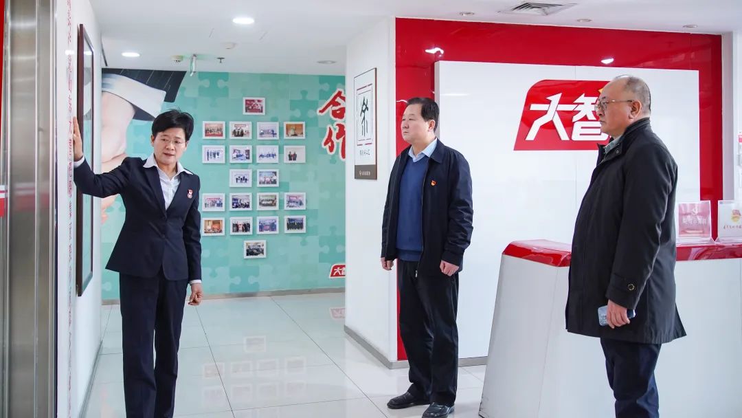 王現芹帶領大家參觀了黨建長廊,詳細介紹了大智黨委組織架構、企業文化等相關情況,以及“智惠黨建一三九”黨建工作模式,黨建引領下的“一帶一促”群團建設理念和“智惠+”群團建設模式。大家對大智的黨建工作給予了高度評價。