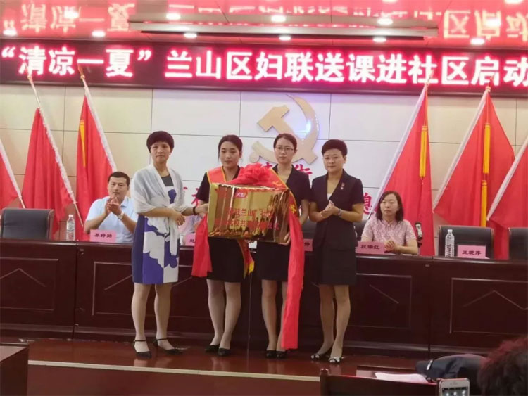 蘭山區柳青街道黨工委宣統委員王靜和大智教育集團黨委書記、副總裁、婦委會主任、好媽媽俱樂部主席王現芹為啟動儀式揭牌