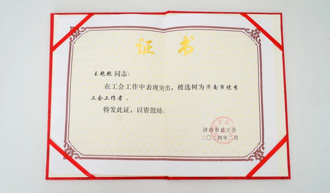 為激勵先進,樹立榜樣,發揮典型示范作用,近日,濟南市總工會開展濟南市優秀工會工作者選樹活動。大智控股集團工會主席王艷艷被樹為濟南市優秀工會工...