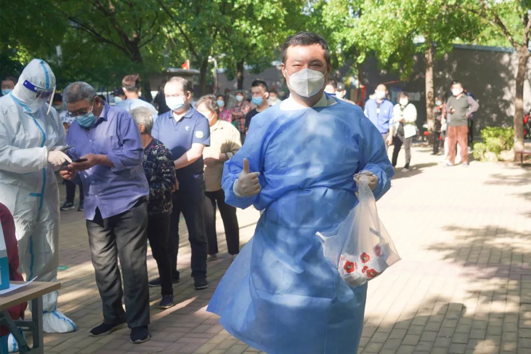 大智青年志愿者們幫助維持現場秩序,仔細查驗現場群眾健康碼、行程碼,耐心引導群眾登記信息,發放核酸檢測貼紙,整個工作流程銜接順暢、秩序井然、快速高效。